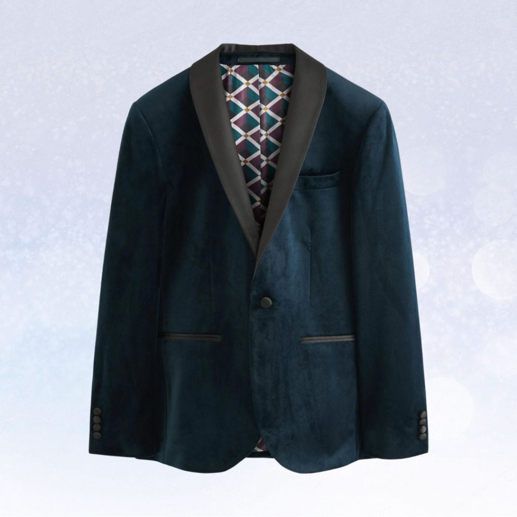 Velvet is a key luxe fabric at Christmas for menswear with M&S & Next both debuting eminently wearable pink velvet blazers (but other less exuberant colours are available).